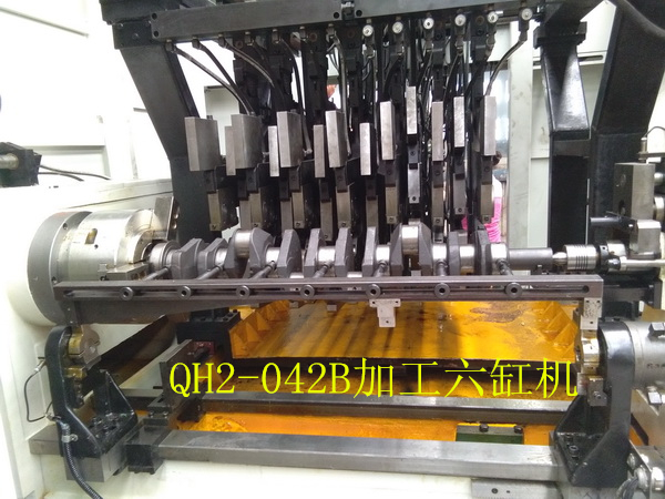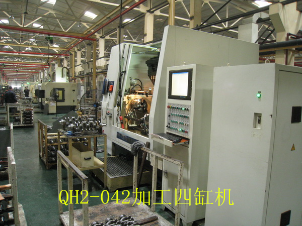 QH2-042變力曲軸圓角滾壓及滾壓校直機床(發(fā)明專利號1823602)是與武漢理工大學共同開發(fā)的一款高檔數(shù)控設備。該機床為九鉗直立布置,可以一次性對所有四缸曲軸完成的變力滾壓,自動檢測和自動滾壓校直的加工。該機床帶有測力器,自動檢測工件零位,自動檢測記錄工件加工情況和滾輪破碎自動檢測等功能,可以完全保證工件的加工質(zhì)量。具備與著名德國的圓角滾壓設備制造商Hegenscheidt公司產(chǎn)品同樣的功能,具有極高的性價比。