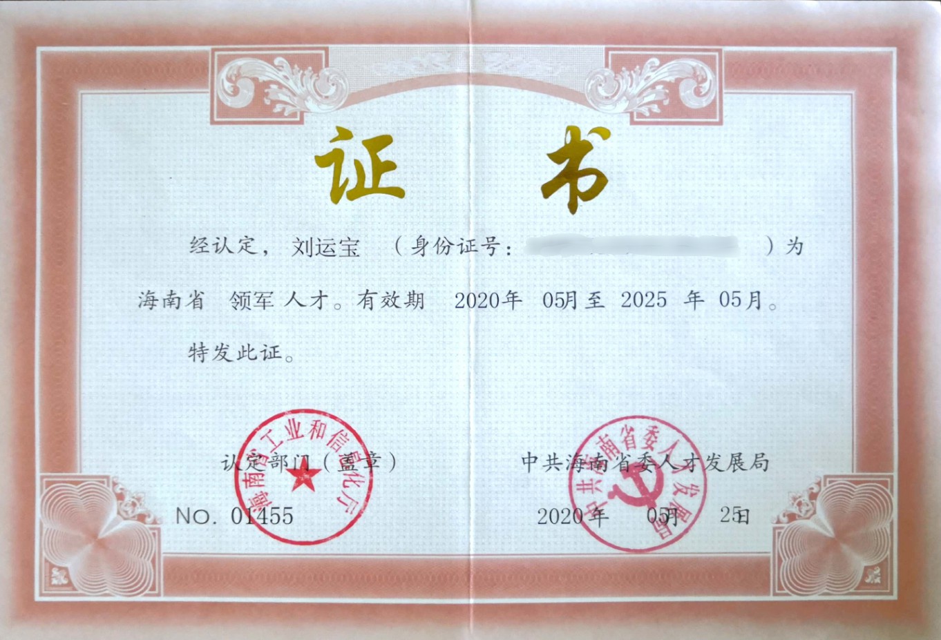 2020年5月,公司總經(jīng)理劉運(yùn)寶被評(píng)為海南領(lǐng)軍人才。海南領(lǐng)軍人才是海南省委省政府、海南省人力資源保障廳等部門為建設(shè)海南自由貿(mào)易區(qū)(港)引進(jìn)的一類高層次人才。