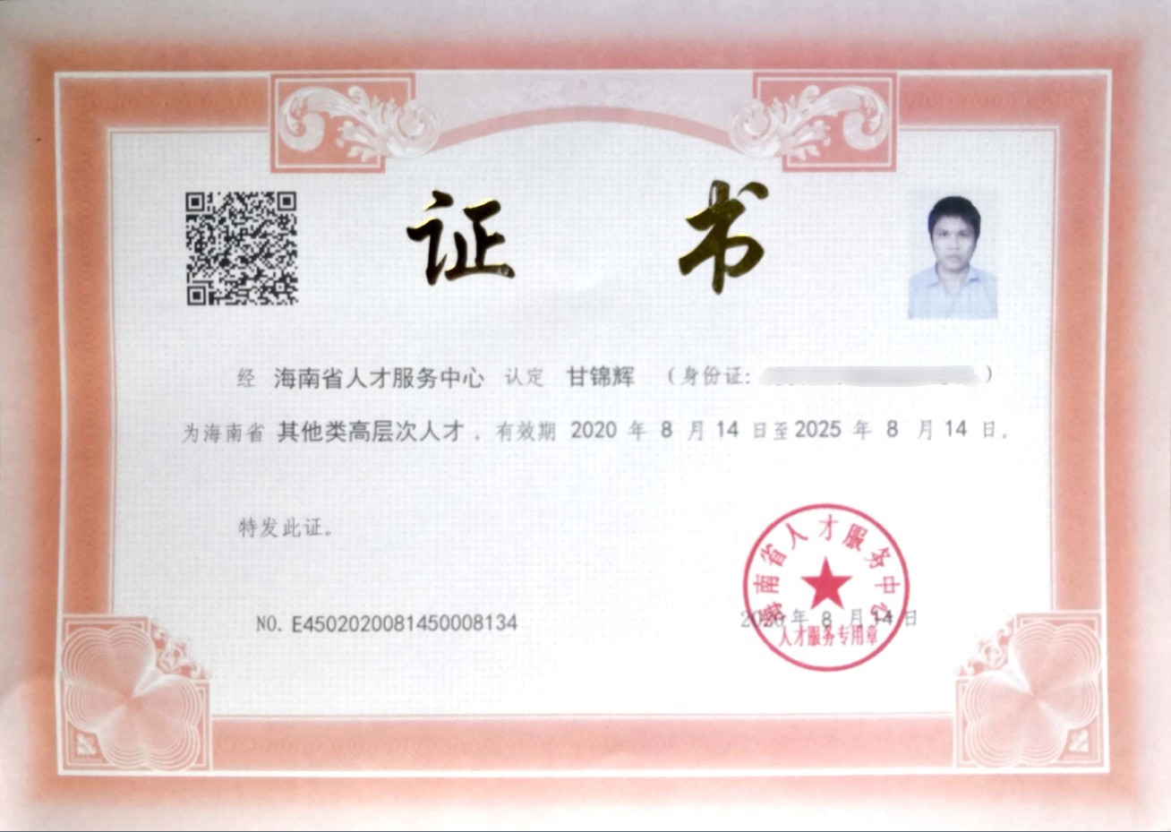 恭喜我司技術(shù)總監(jiān)甘錦輝同志通過(guò)海南省高層次人才評(píng)定,可以享受海南相關(guān)人才待遇。甘錦輝主要業(yè)績(jī)?nèi)缦拢?/span>
