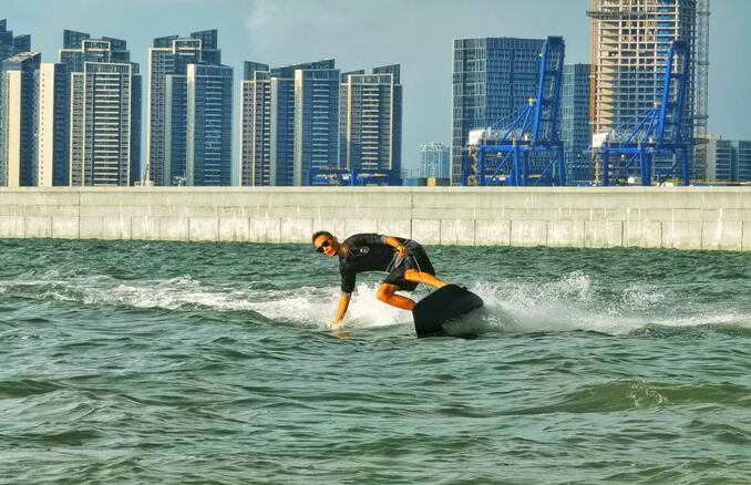 2022海南電動(dòng)沖浪板體驗(yàn)營(yíng)面向廣大親水運(yùn)動(dòng)愛好者免費(fèi)開展,活動(dòng)內(nèi)容包括電動(dòng)沖浪板培訓(xùn)、電動(dòng)沖浪板環(huán)圈沖浪體驗(yàn)、電動(dòng)沖浪板水上盲盒奪寶等?;顒?dòng)吸引了來自全國(guó)各地的親水運(yùn)動(dòng)愛好者近百人參加,大家都穿戴好下水裝備,準(zhǔn)備一試身手。來自外地的王先生玩過傳統(tǒng)沖浪板,這次來參加電動(dòng)沖浪板體驗(yàn)營(yíng),就是想感受一下電動(dòng)沖浪板的特別之處,感受電動(dòng)沖浪板的魅力。曾經(jīng)有過一次電動(dòng)沖浪板體驗(yàn)的楊女士,這次也是慕名前來參加,曾經(jīng)只能趴在電動(dòng)沖浪板上玩,此次體驗(yàn)的目標(biāo)非常明確,就是站在電動(dòng)沖浪板上,體驗(yàn)一回真正的乘風(fēng)破浪。來自海口的曹先生是一名水上運(yùn)動(dòng)愛好者,對(duì)于電動(dòng)沖浪板而言,他表示上手簡(jiǎn)單,教練教一次就可以掌握要領(lǐng),在無風(fēng)無浪的情況下,也可以玩得很開心。